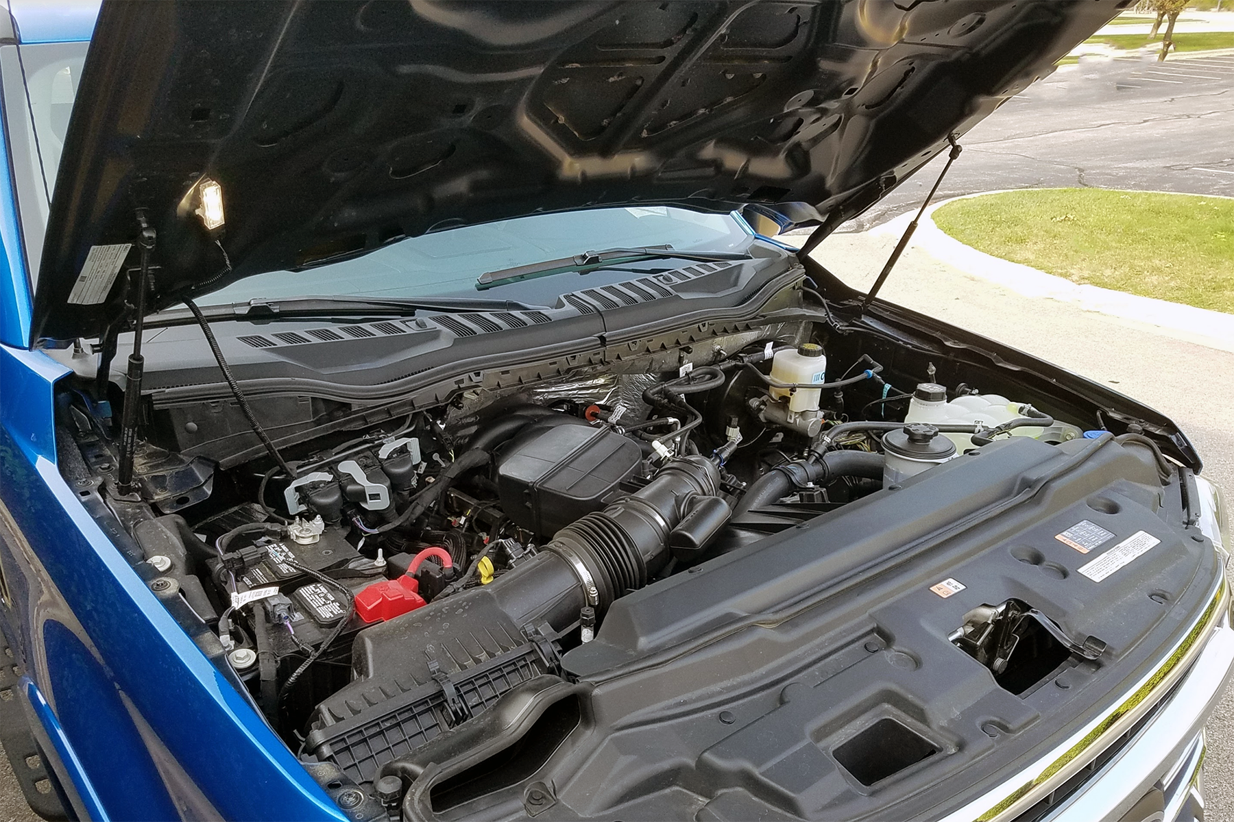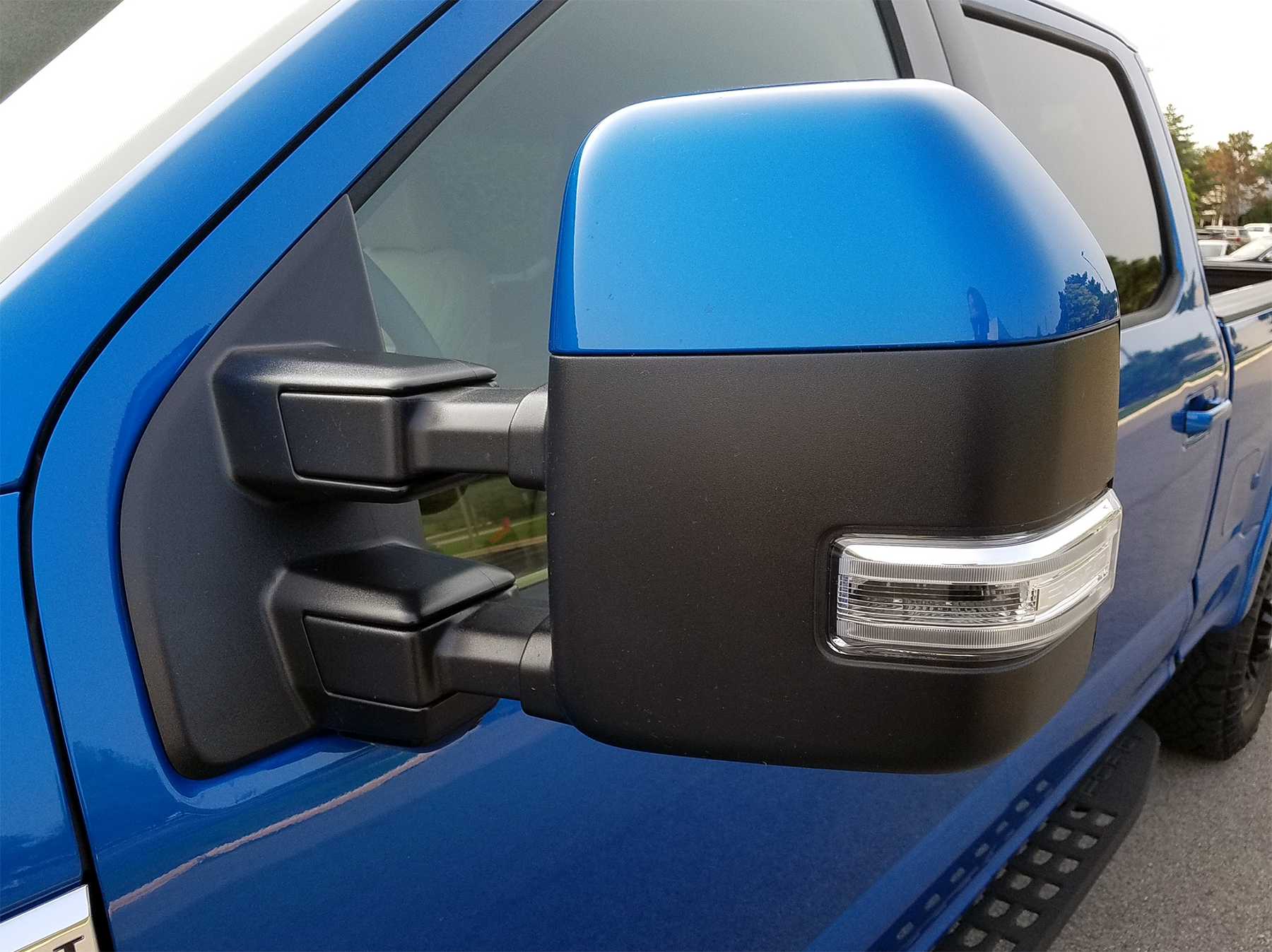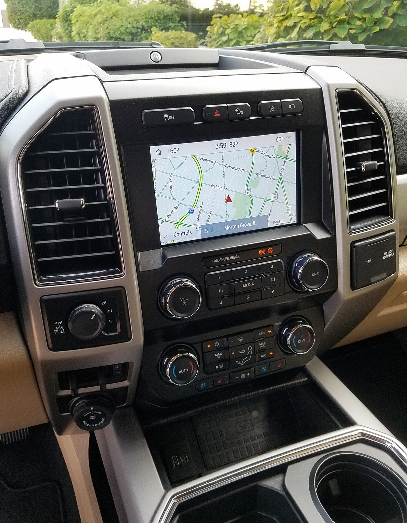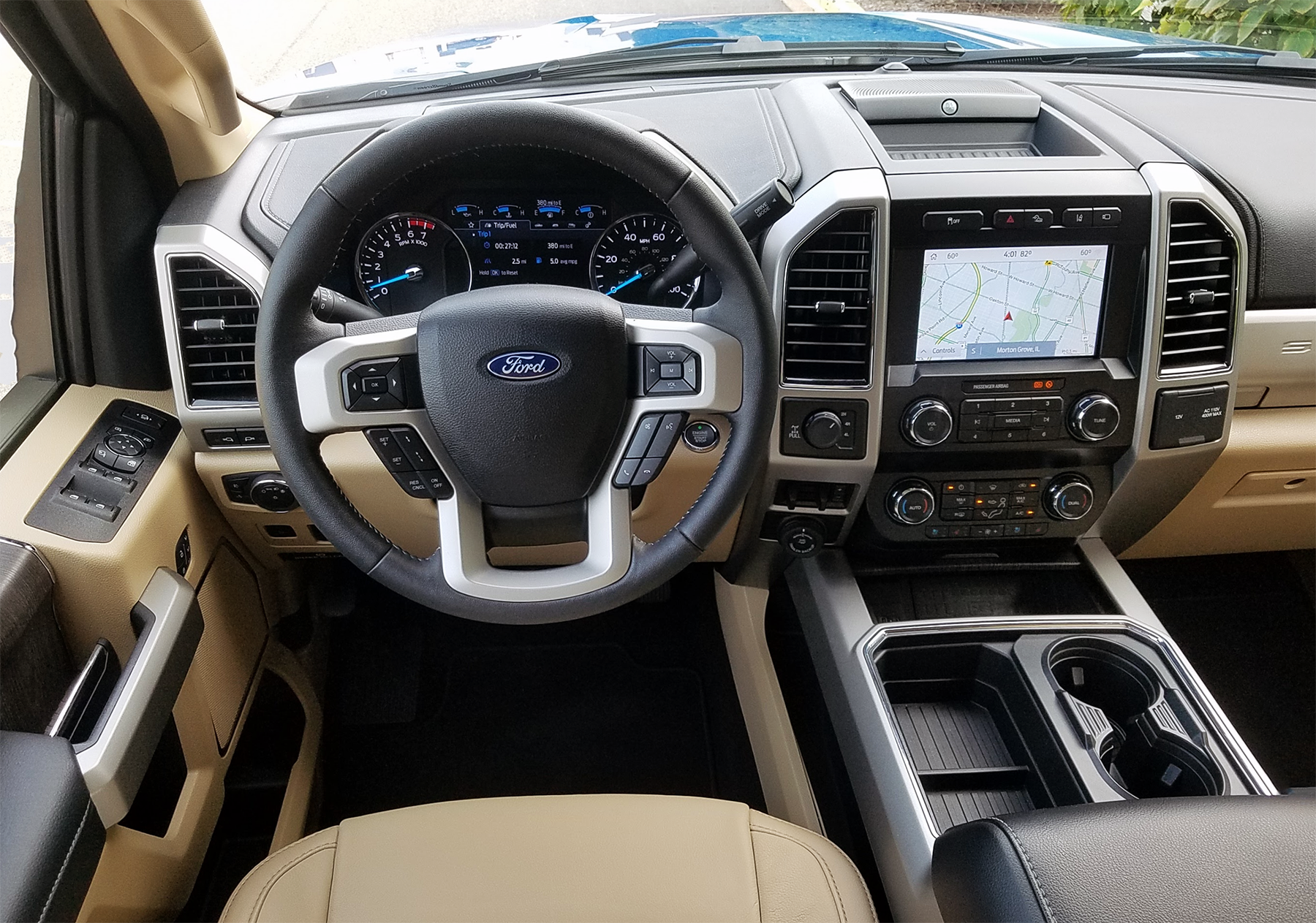 Standard equipment includes a power sliding rear window, power tailgate lock, tow hooks, trailer brake controller, trailer sway control, 10-way power front seats, dual-zone automatic climate control, 10-speaker Bang & Olufsen sound system, satellite radio, Wi-Fi hotspot, remote keyless entry, and convenient Sync3 infotainment system with an 8-inch touchscreen. Electronic safety minders consist of blind-spot and rear cross-traffic alerts, lane-keeping warning, reverse sensing, and pre-collision assist with automatic emergency braking. Some of the things included in the considerable options load were loading ramps that stow in the cargo bed, spray-in bed liner, navigation, and heated and ventilated front seats.