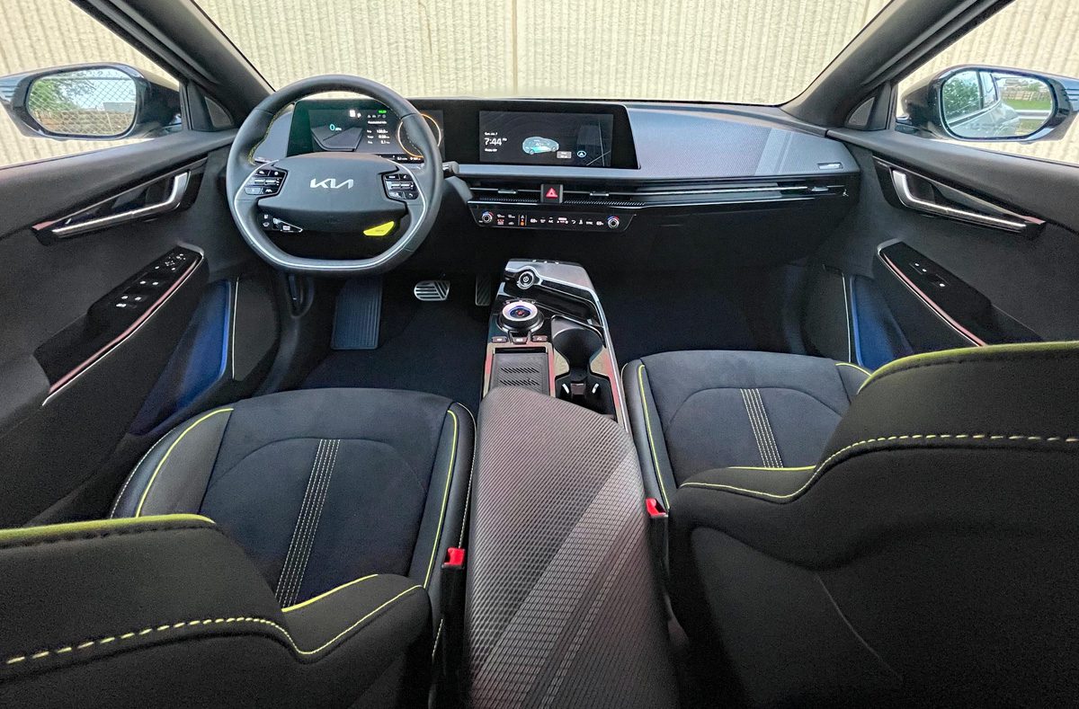 Despite the EV6’s relatively modest footprint, the electric Kia will host four adults in serious comfort, this without confining footwells or an old-school center hump running through the cabin.