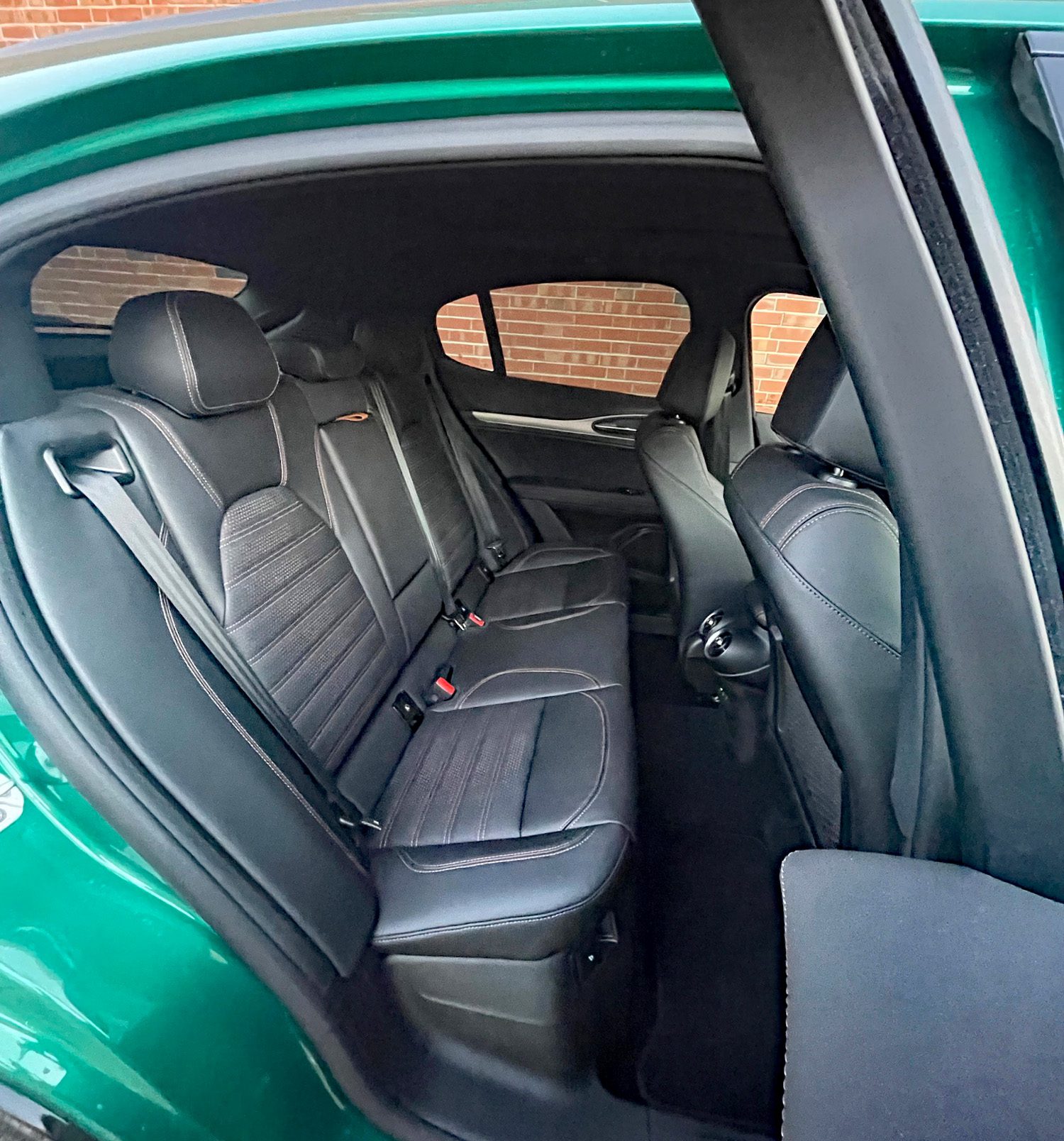 Inside, the cabin is nicely finished in mostly classy materials, and the control layout, which is a little busy, is logically arrayed and mostly simple to use. There’s plenty of large-adult space, and decently wide door openings mean getting in and out of this Alfa is pretty easy.