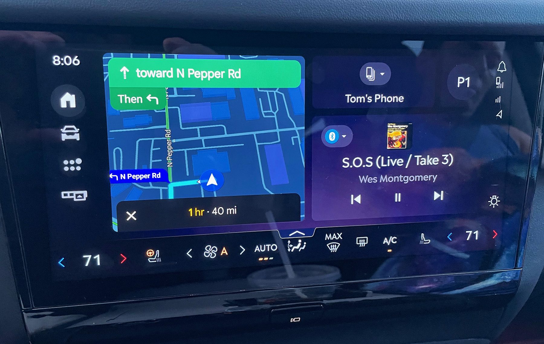 Most impressive, however, is the massive, pillar-to-pillar, LCD screen which is positioned below the windshield. The sprawling, easy-to-read monitor can be configured to present whatever information you would like to see at a glance, and is independent of the console screen (see below). This editor chose to have an analog clock, current music choice, a map, and trip information on display. And, despite the screen location, it is not easily washed out, ever by direct sunlight.
