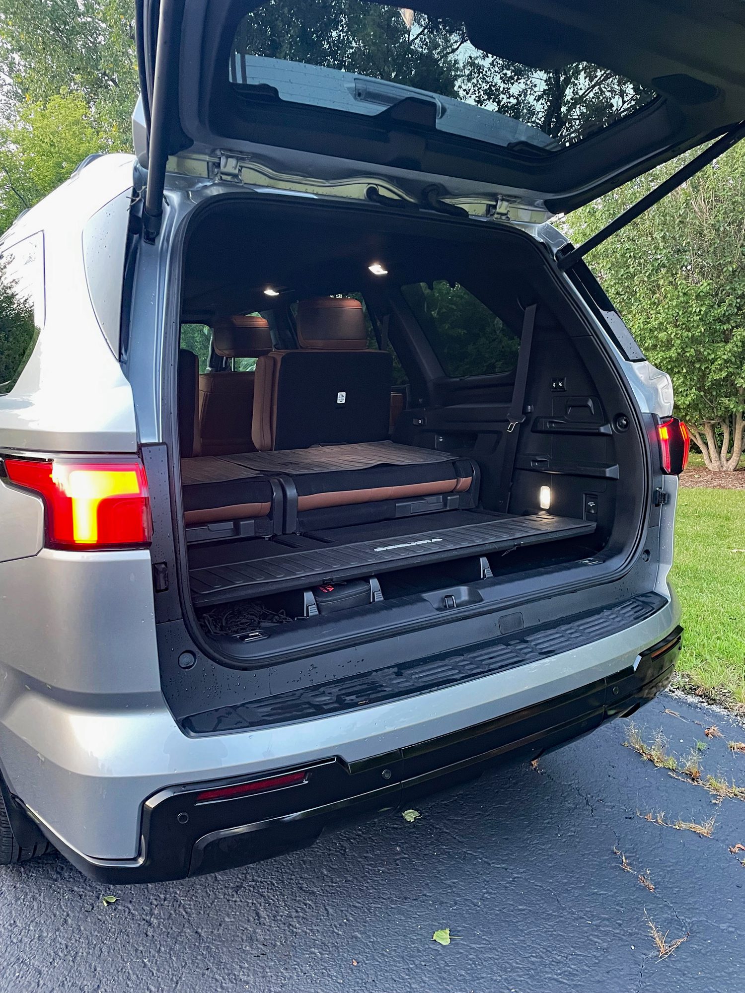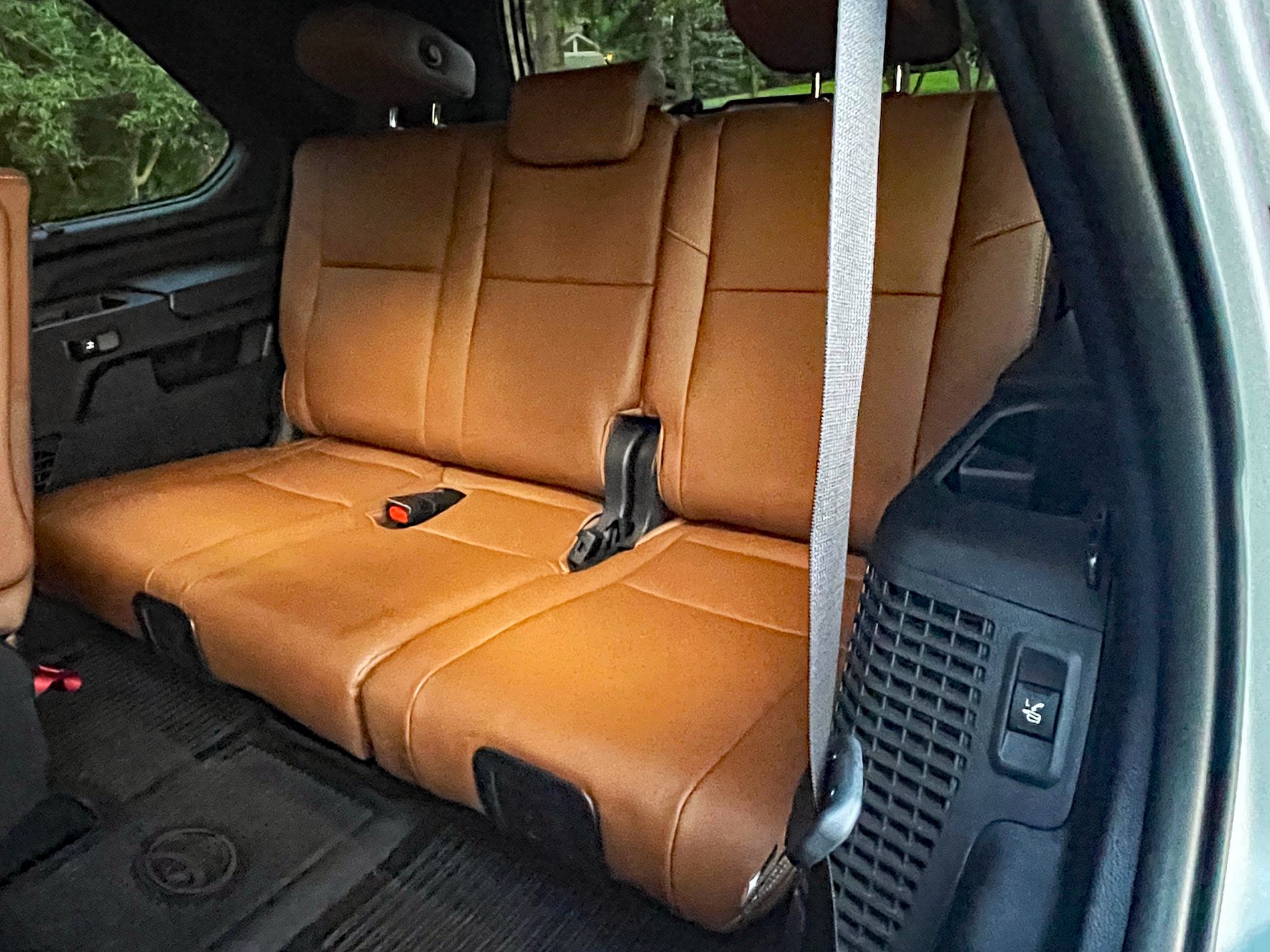 Thoroughly redesigned for the 2023 model year, the Sequoia plays in an interesting corner of the segment, that of the slightly smaller, more fuel-efficient option. At a tidy 208 inches in overall length, the Toyota is comfortably shorter than the Chevrolet Tahoe (221) and significantly smaller than the Chevy Suburban (226). The Sequoia is also about an inch narrower than the popular Chevy duo.