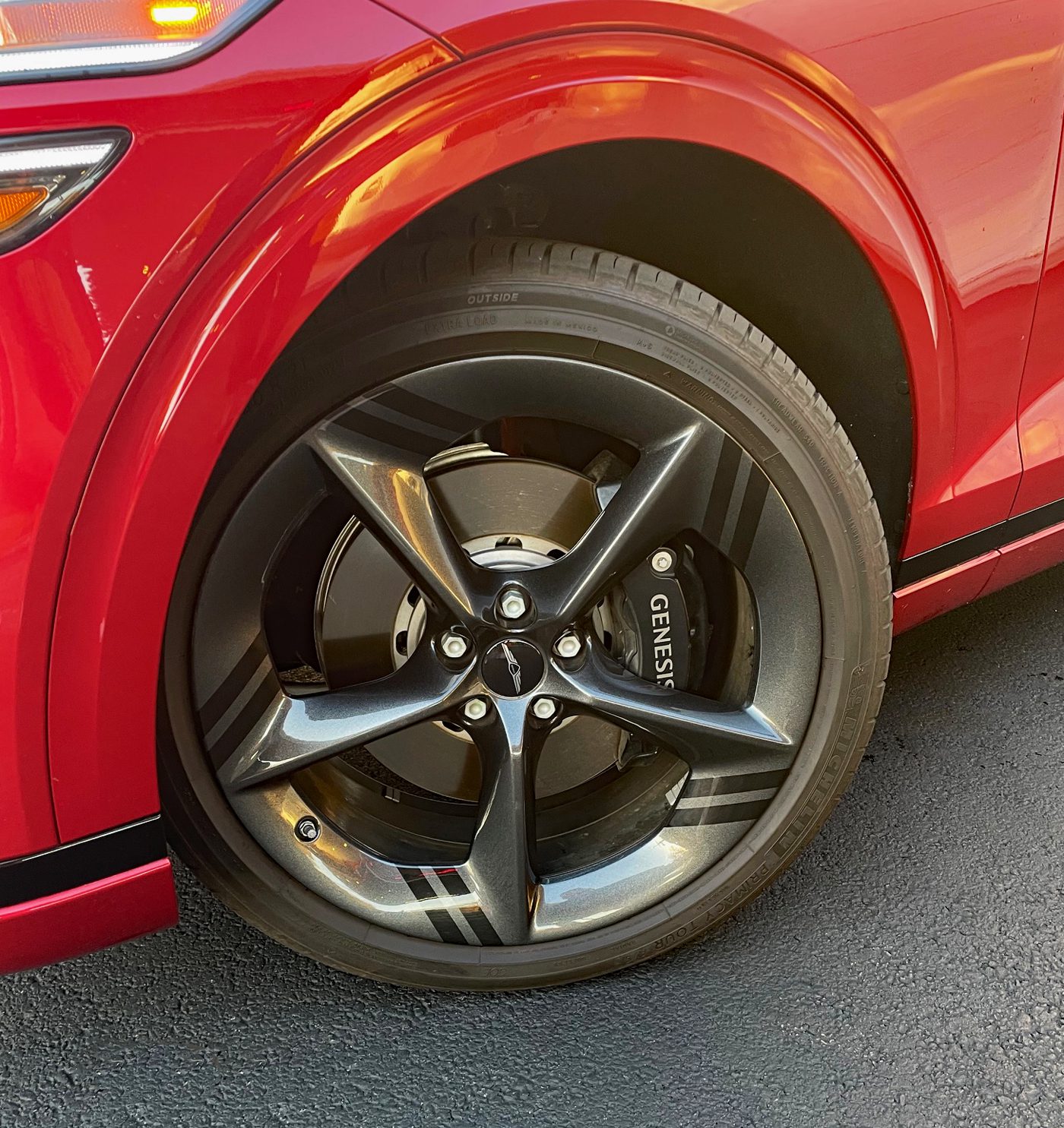 The GV70 looks good, especially in high-zoot Sport Prestige trim, but it does not look overtly sporty. There is still plenty of bright trim accenting the ‘70’s exterior, and the wheels are only gray-tone, not full-on sinister black. And, frankly, we like the look.