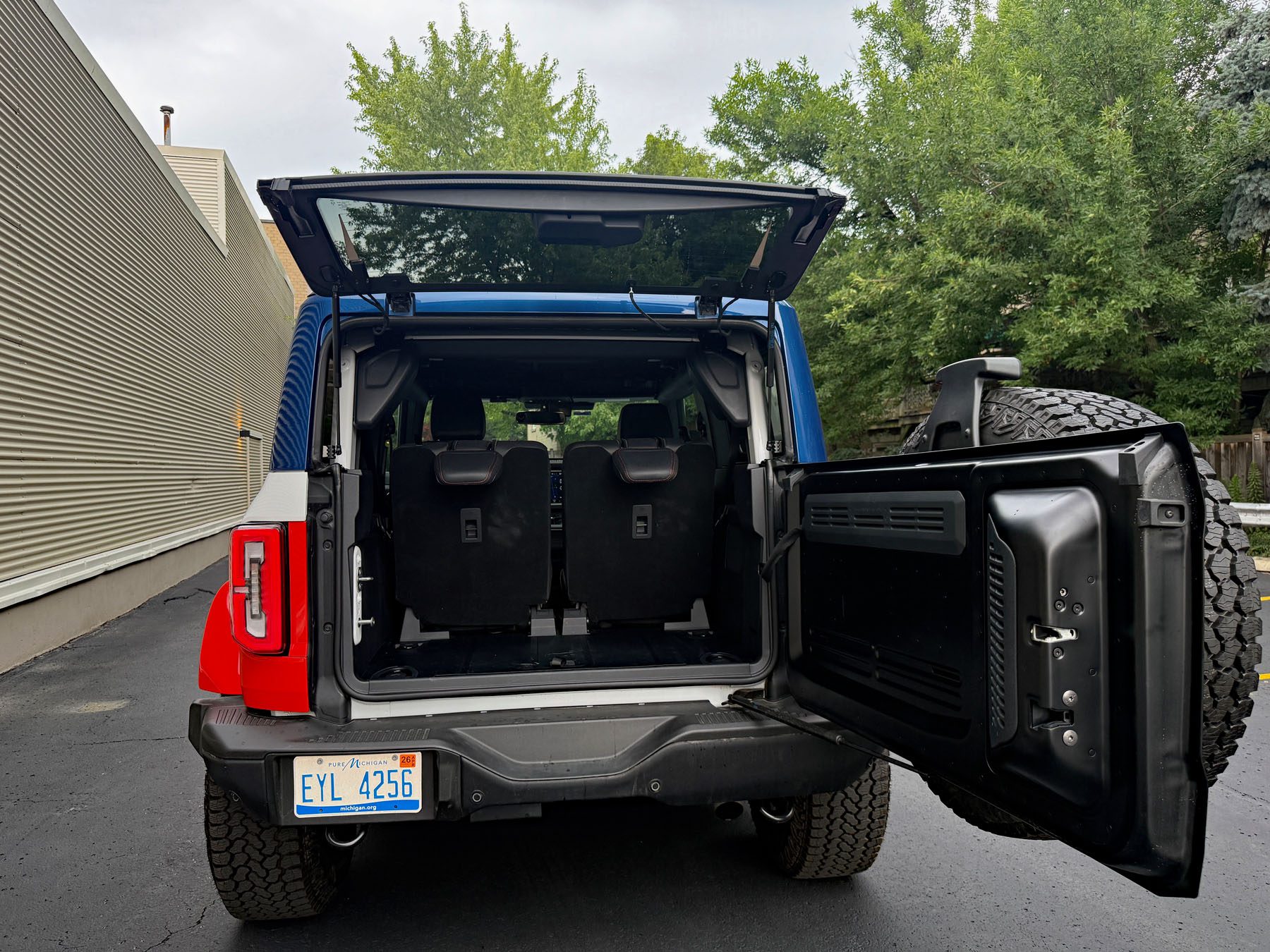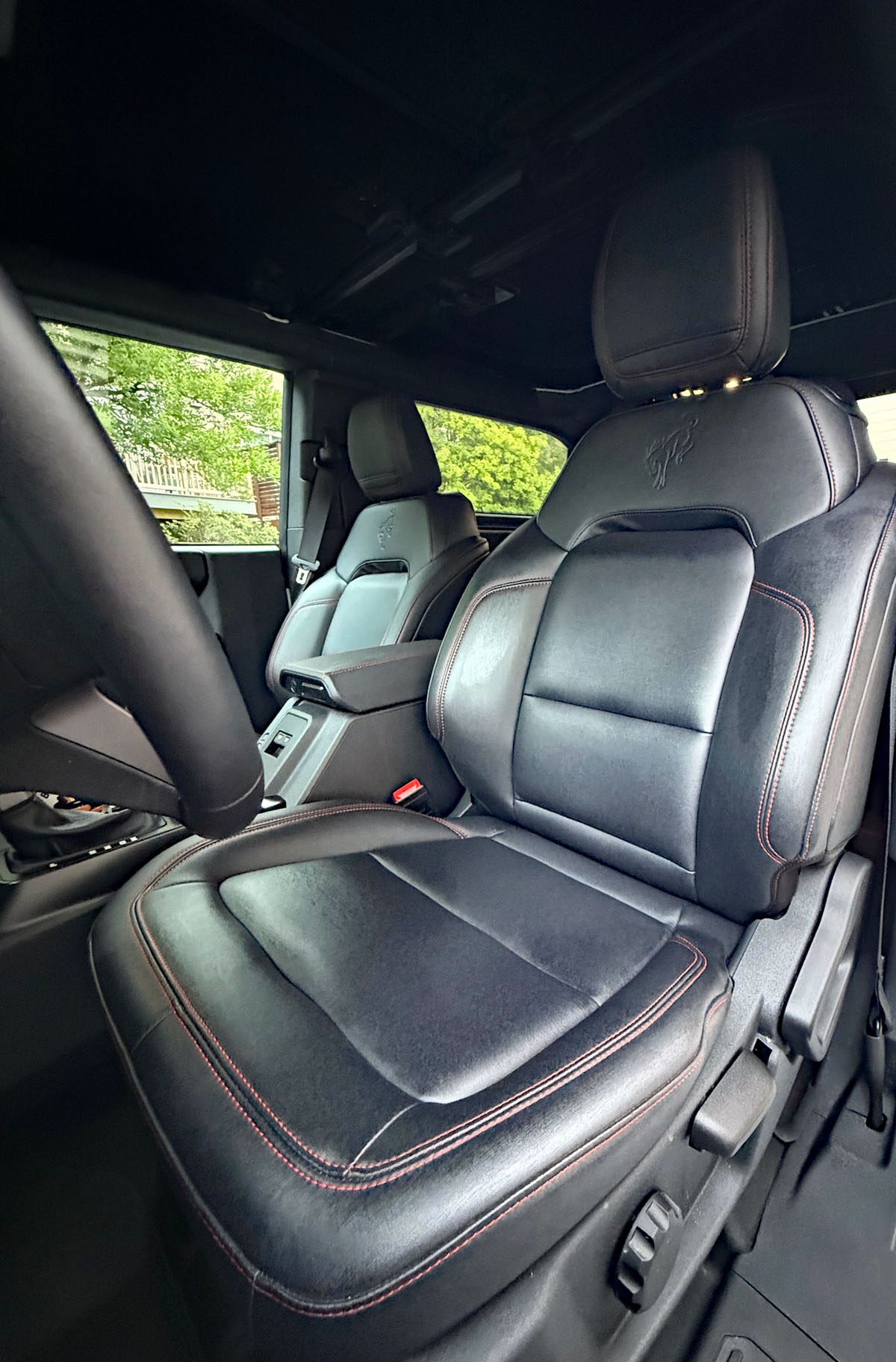 Though the styling is retro, the tech in the Bronco Stroppe is not. OK, yes, the seat and steering wheel adjustments are manual, but everything else is from 2025. In addition to creature comforts like dual automatic climate controls and heated front seats, you’ll have a 12-inch digital gauge cluster, 12-inch infotainment screen, wireless Apple CarPlay/Android Auto, Bang & Olufsen Sound system, and ambient lighting. There’s also a ton of standard safety tech such as 360-degree camera views, blind spot monitoring, rear cross-traffic alert, lane keep assist, automatic emergency braking, adaptive cruise control, and automatic high beams.