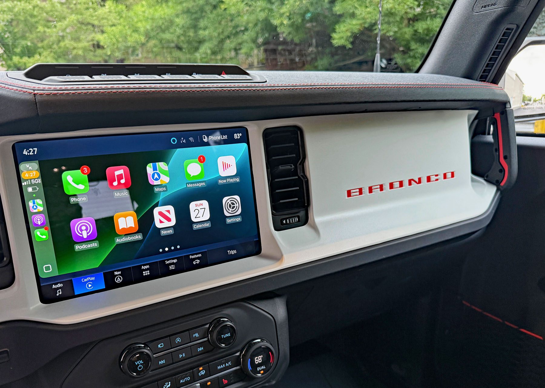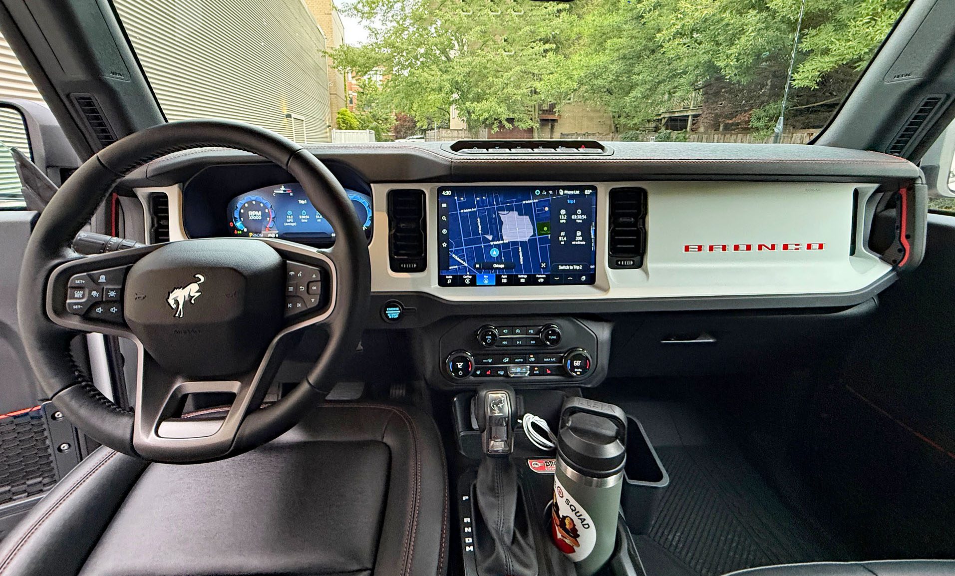 Though the High-Performance Off-Road Stability Suspension (HOSS) 3.0, 35-inch Goodyear Territory RT tires, bash plates, high-clearance ride height and FOX internal bypass dampers are designed for off-road, they come in handy in the urban jungle as well. Potholes in Chicago can swallow a small car whole, and the speed bumps are like fallen logs in a forest. The Bronco Stroppe had no problems cleanly navigating these urban pitfalls with ease and comfort.
