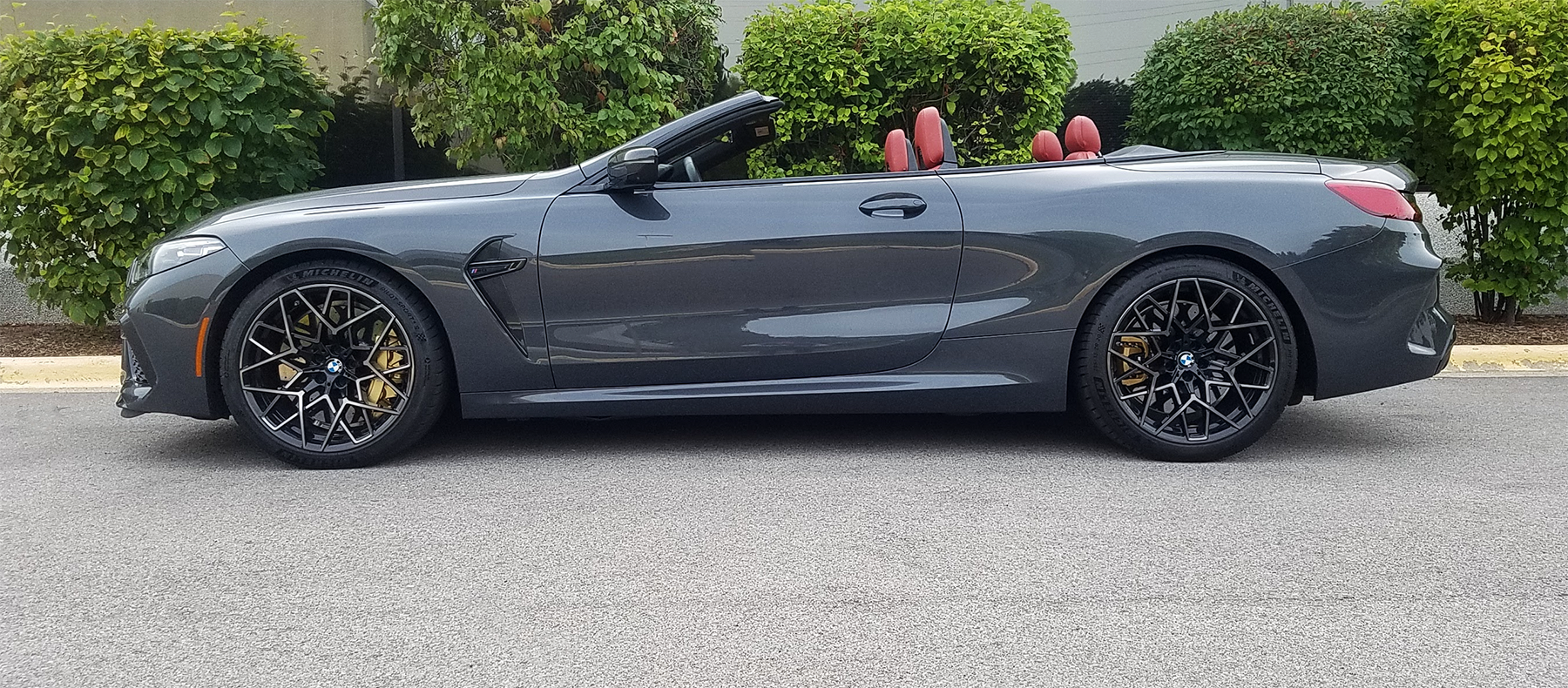 The car is a rolling showcase of systems, settings, and sensors in the service of high-speed luxury driving. The M8s, in coupe and convertible and “base” and Competition versions, are 2020 newcomers to the premium sporty/performance 8-Series lineup that began replacing the 6-Series in 2019. Consumer Guide tried out the costliest of all M8s, the Competition convertible that starts at $157,495 after delivery and $1000 in Gas Guzzler tax. However, a fuller display of the vehicle’s upgraded and microprocessed bells and whistles is available through a number of individual and packaged options. That’s how CG’s test car came to have a price of $180,245.