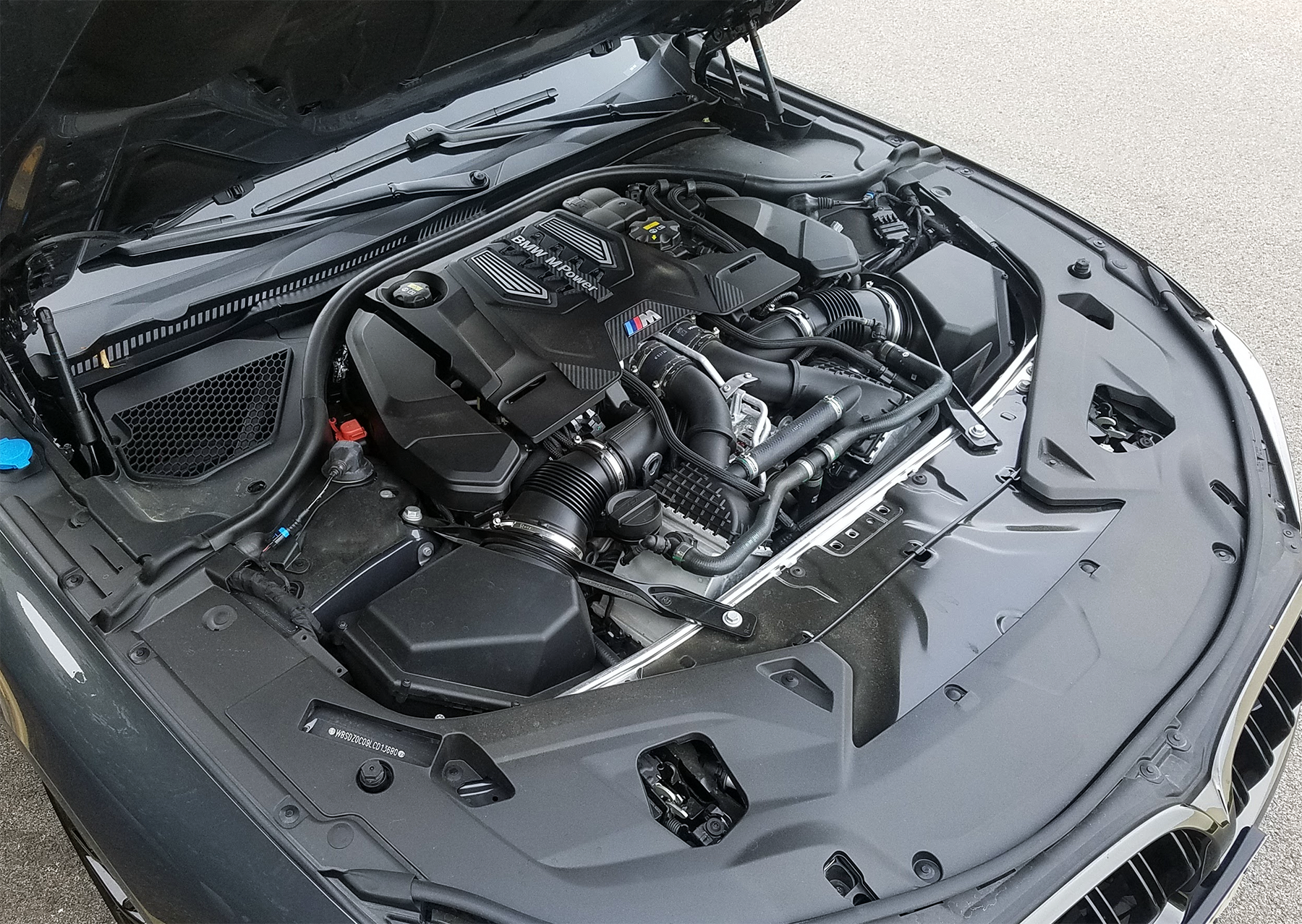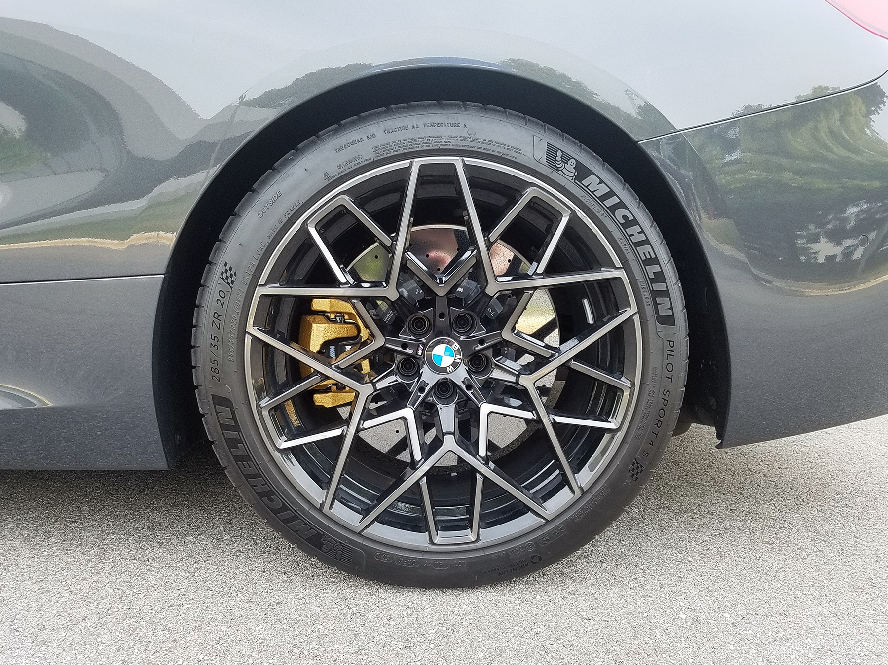 Ride is, of course, always firm but not jarringly hard, even in Sport+, which was a surprise. Indeed, in base “Comfort” mode there’s pretty good suspension compliance. Grip-sustaining performance tires are wrapped around staggered-width wheels (rear rims are one inch wider than those in front). Steering and braking come down to a binary choice between Comfort and Sport. Bringing all the M8’s go to a stop has been thought out as well as anything else on the car, and CG’s tester was outfitted with the $8150 M carbon ceramic brakes that use a more heat-resistant material for the 4-wheel discs and employ slightly upsized rotors in front. Going to Sport conjures more forceful, almost grabby brake action.