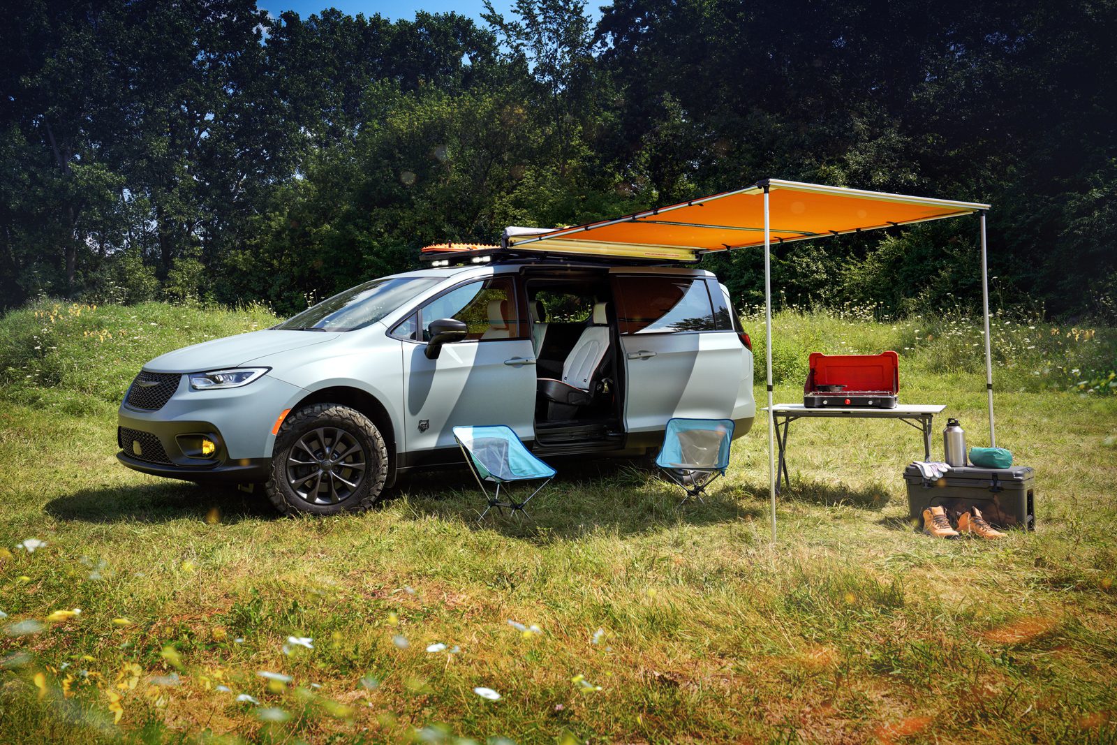 “We’ve been following van life for years, and we know adventurers really value the versatility the Pacifica delivers,” said Chris Feuell, Chrysler brand CEO. “Our Chrysler design studio nailed the brief and really dove in. They lifted the suspension, added useful, functional features, including a roof-mounted Rhino-Rack Pioneer Platform rack, TYRI LED lighting and ARB retractable awning, and tailored the cabin for sleeping to create this Pacifica Grizzly Peak Concept as a test bed. We’re excited to get feedback from the van-life adventurers on our newest concept of the most awarded minivan ever.”
