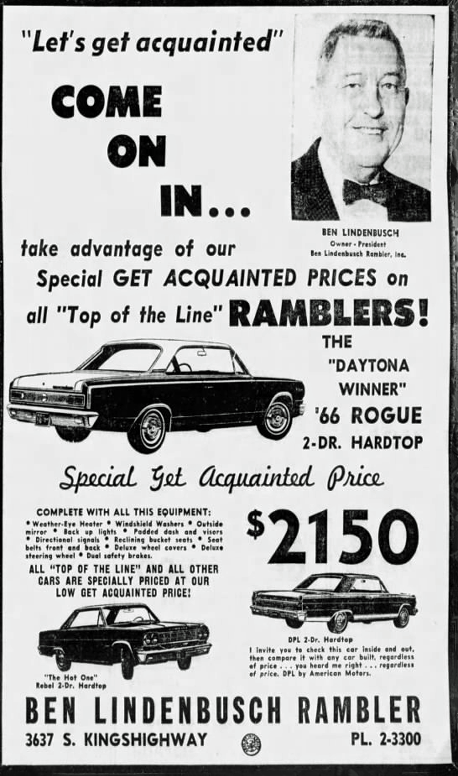 Dealers like to appear in their own ads, so it was common to see a giant head floating above the week’s bargains. And the bargains! In huge type appeared unlikely prices which were sure to lure customers to local dealers–just in case the price was correct, and the single example available at that price had not yet been sold.