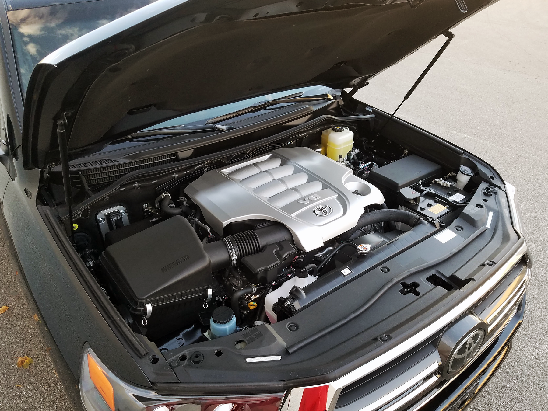 The drivetrain starts with a 5.7-liter V8 that’s hooked to an 8-speed automatic transmission. The 4-wheel drive is full time with a 2-speed transfer case and locking center differential. Electronic drive settings keyed to the underlying terrain, crawl control, and trailer sway control are built in.