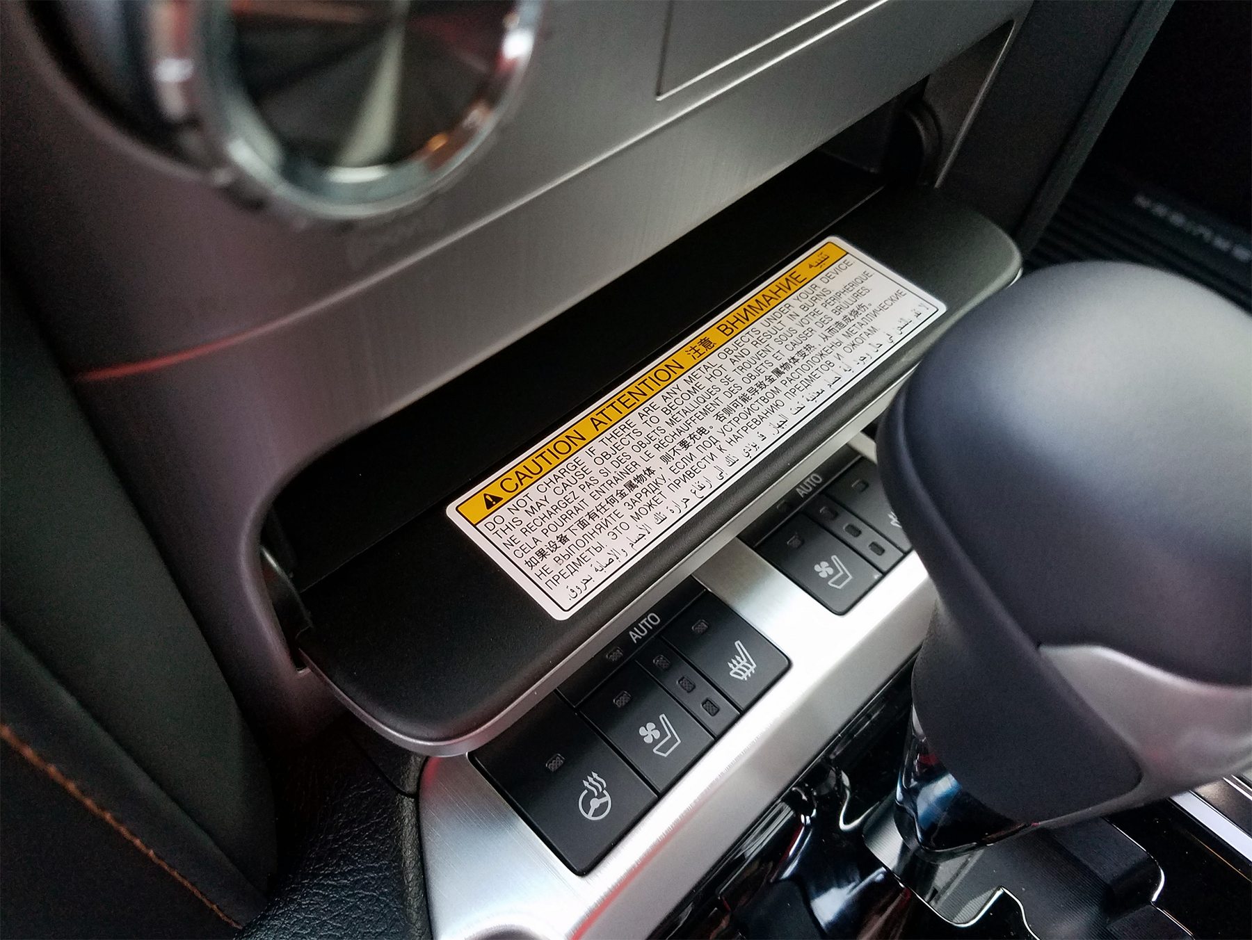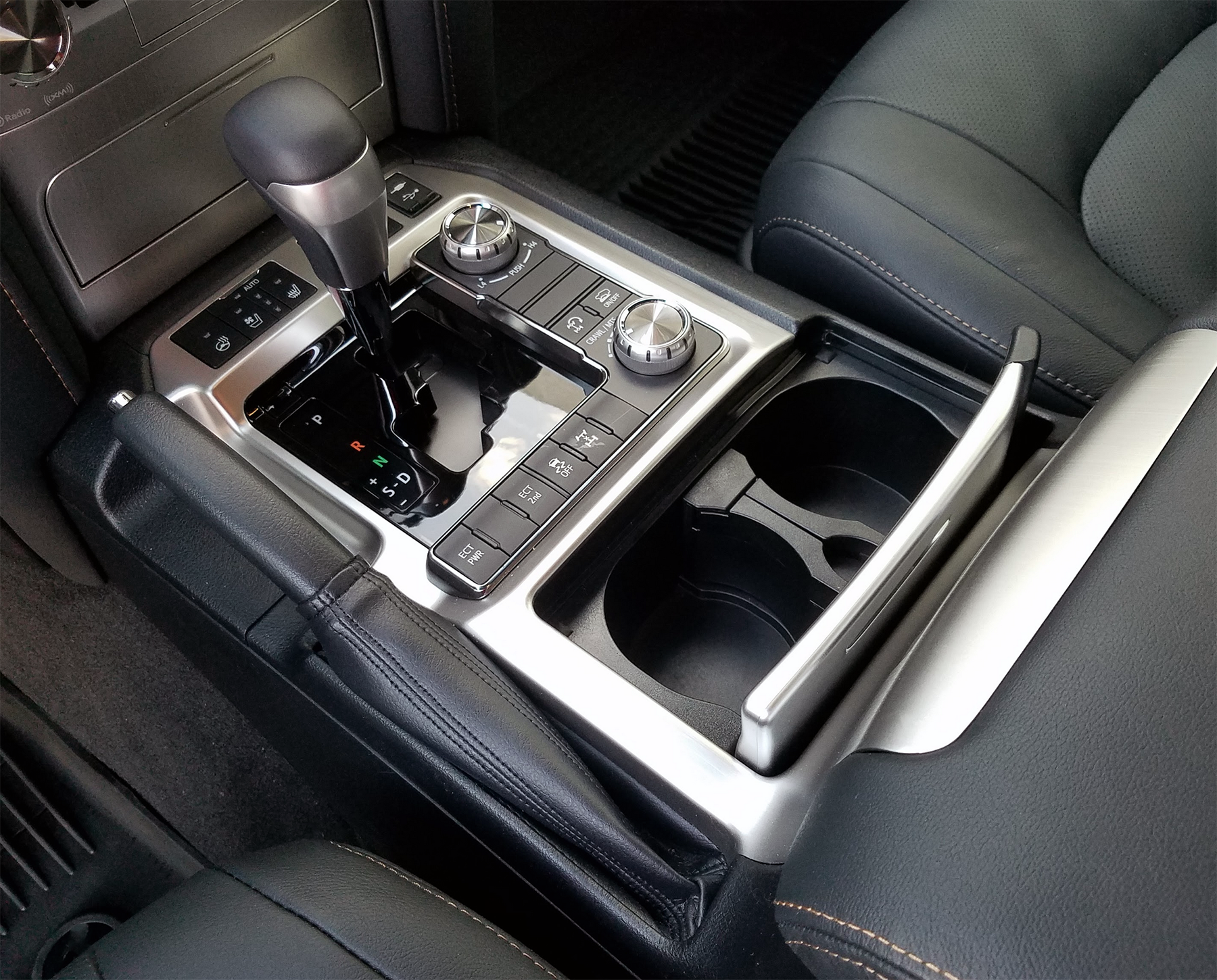 In addition to the console box previously mentioned, personal-item storage is handled by a large 2-tiered glove box, door pockets with bottle holders, a deep covered bin with power point at the front of the console, and net pouches on the backs of the front seats. Twin covered cup holders are in the console and two more pop out of the pull-down storage armrest in the center of the second-row seats. The Land Cruiser tailgate is in two pieces: a transom-like liftgate and a pull-down tailgate. One benefit to not having the third-row seat is a gain in cargo space because even when folded the seat sections intrude somewhat on the load area. The 60/40 second-row seats rest flat when folded, but leave gaps in the floor.