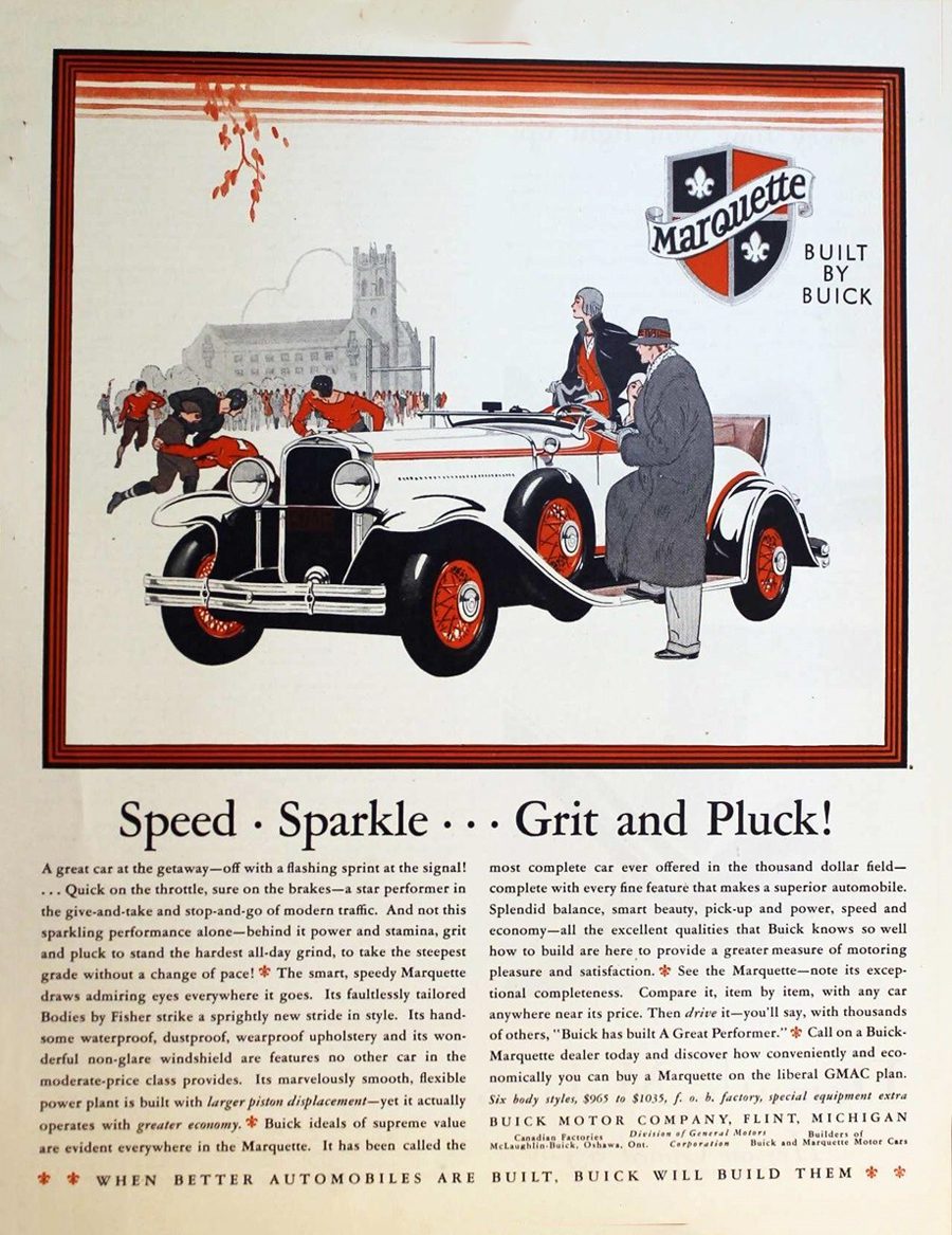 Companion to Buick, Marquette was priced below it with a straight-six engine. The Marquette brand lasted just one year.
